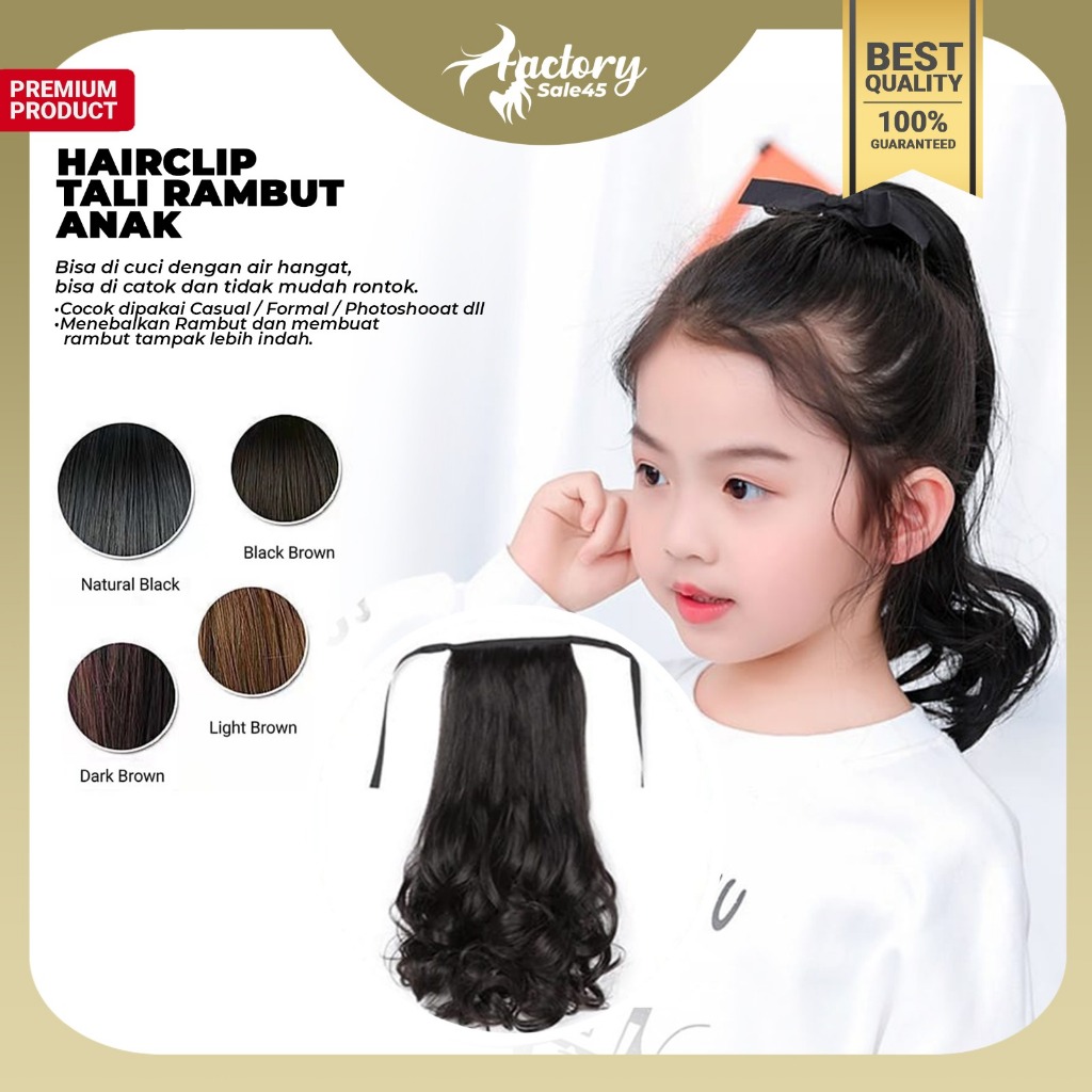 Wig Ponytail Anak Rambut Palsu Extension Hair Clip Ponytail Model Pendek Keriting / Ponytail Curly Tali F924