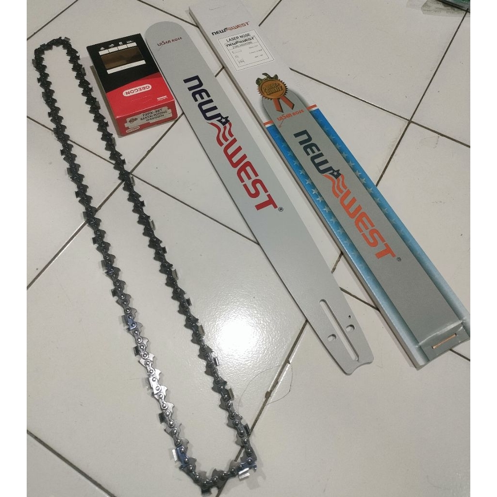 Bar New West 22" + Rantai Potong Oregon 38T Chainsaw Senso 5200 / 5800 / 6800