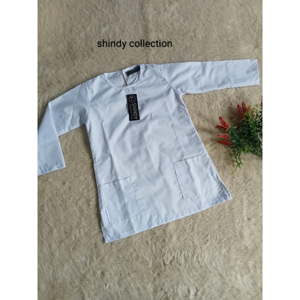 BAJU ATASAN MUSLIM PUTIH POLOS PAKE SAKU ANAK PEREMPUAN SEKOLAH SD/MI/TPA
