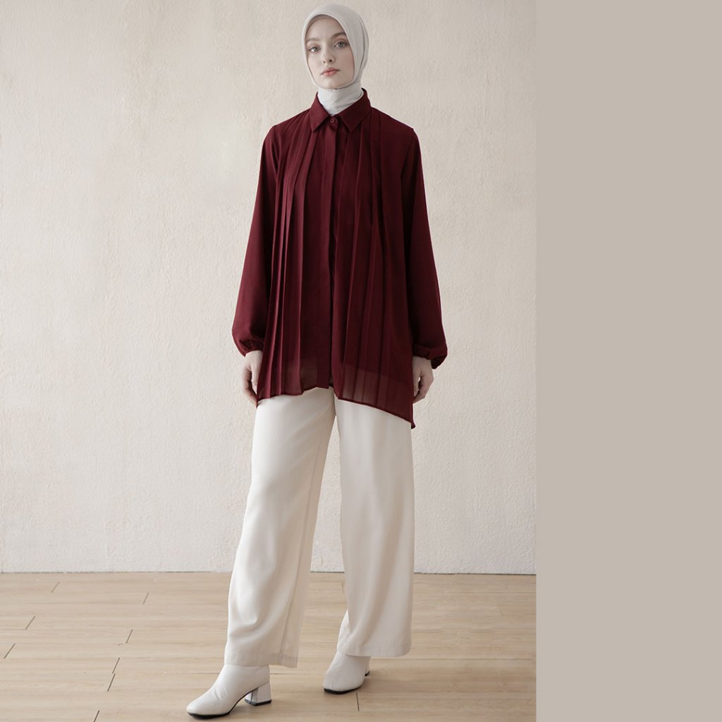 Aryan by Aska Label - Kemeja wanita details pleats lengan panjang