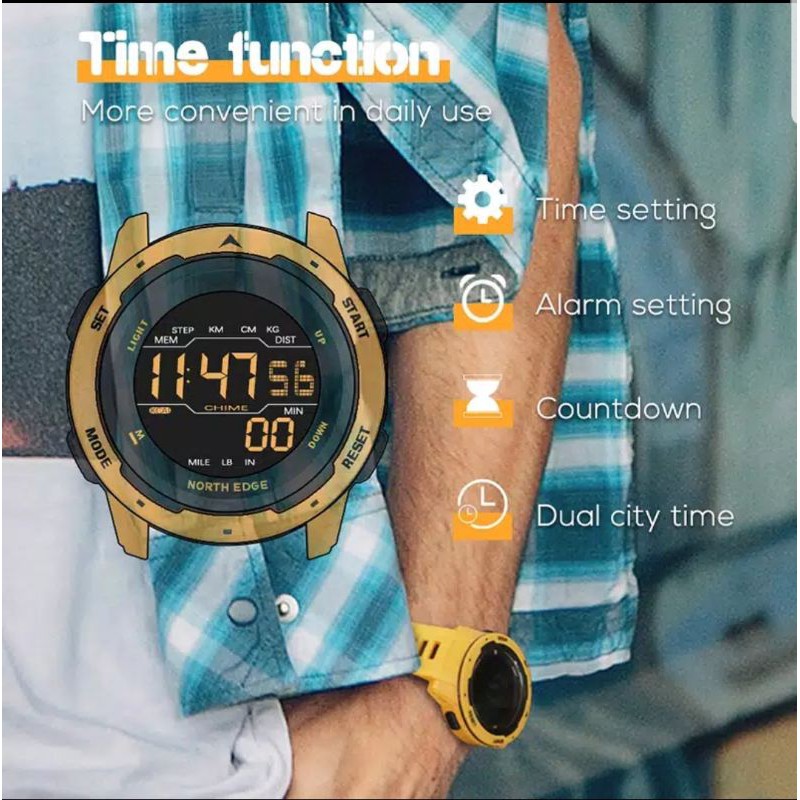 North Edge Mars Original Men Waterproof Digital Sport Watch Calorie Timer Alarm Clock ORIGINAL IMPORT