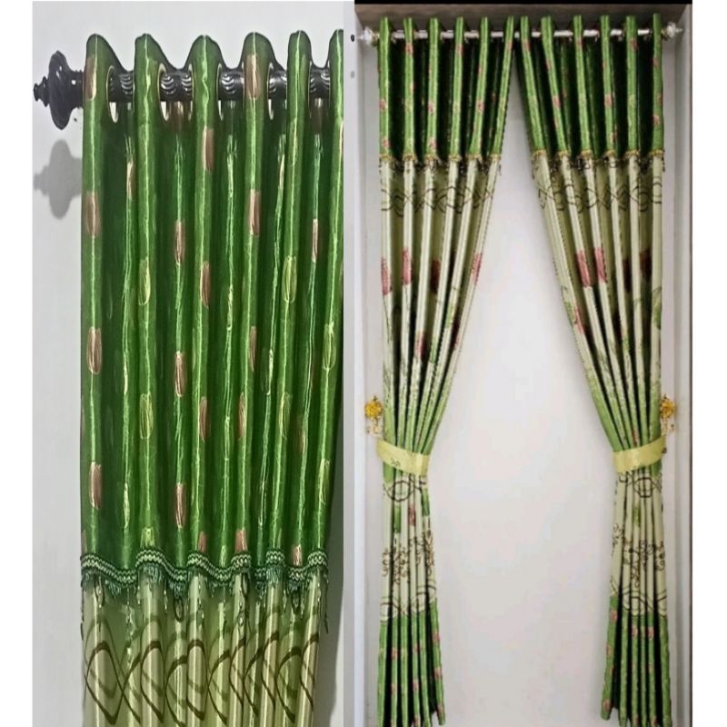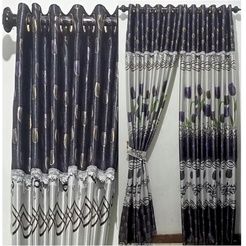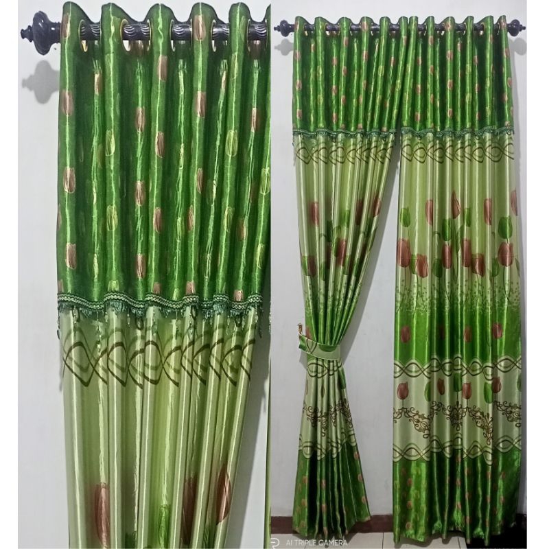 gorden blackout mewah motif Foni tempel bunga tulip tinta emas 5parian warna abu merah hijau coklat biru
