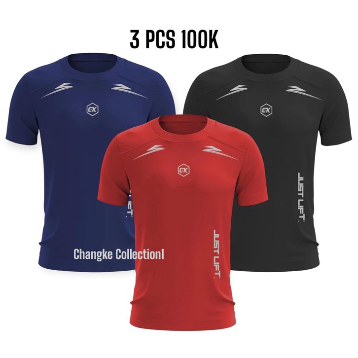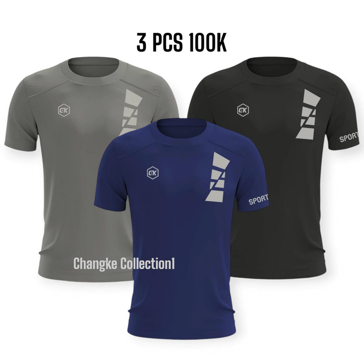 PAKET 3 BAJU OLAHRAGA PRIA LENGAN PENDEK PAKAIAN SPORT BAJU GYM FUTSAL SENAM JOGGING TENIS BADMINTON BAHAN DRY FIT