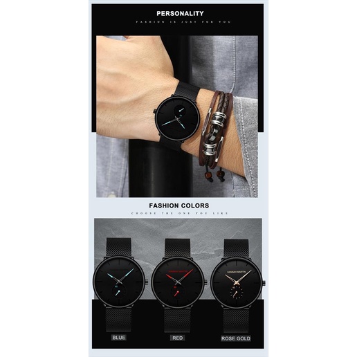 Jam Tangan Pria Hannah Martin HM100G Mesh Analog Premium Anti Air Original