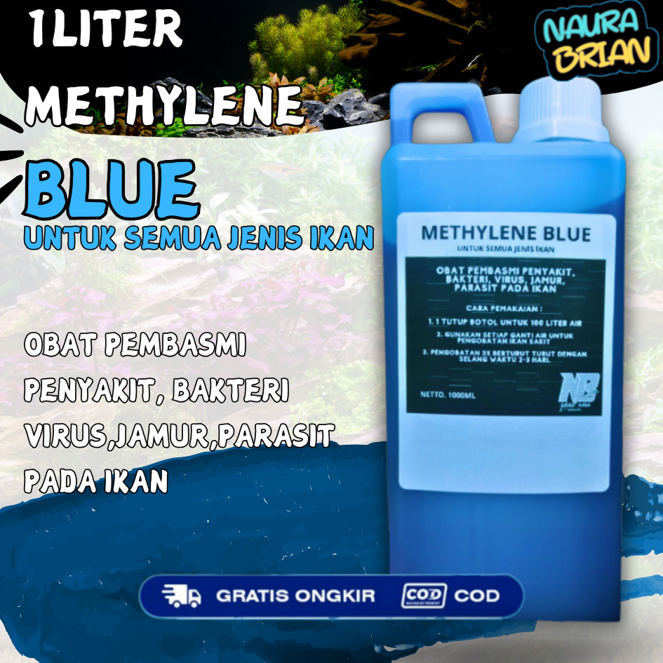 NauraBrian Methylene Blue 1 Liter - Obat Biru Parasit Virus Jamur Bakteri Pada Ikan | METILIN BLUE