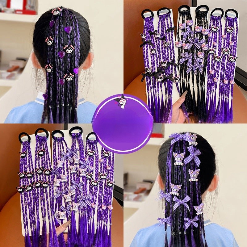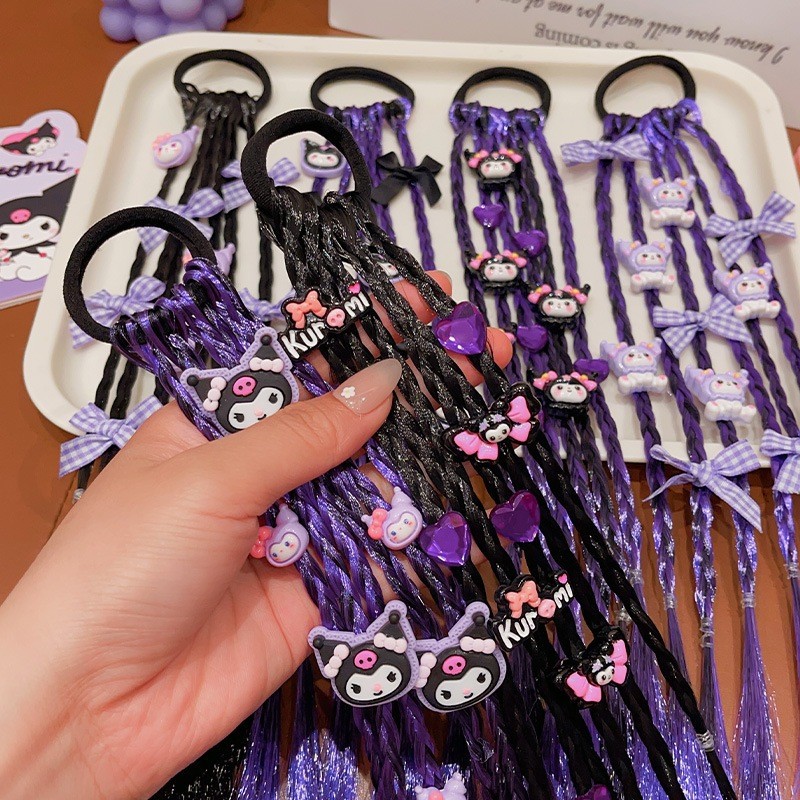 Wig Anak Karakter Kartun Kuromi Kepang Ekor Kuda Lucu Imut Rambut Palsu Cosplay Party Aksesoris Hadiah Ulang Tahun