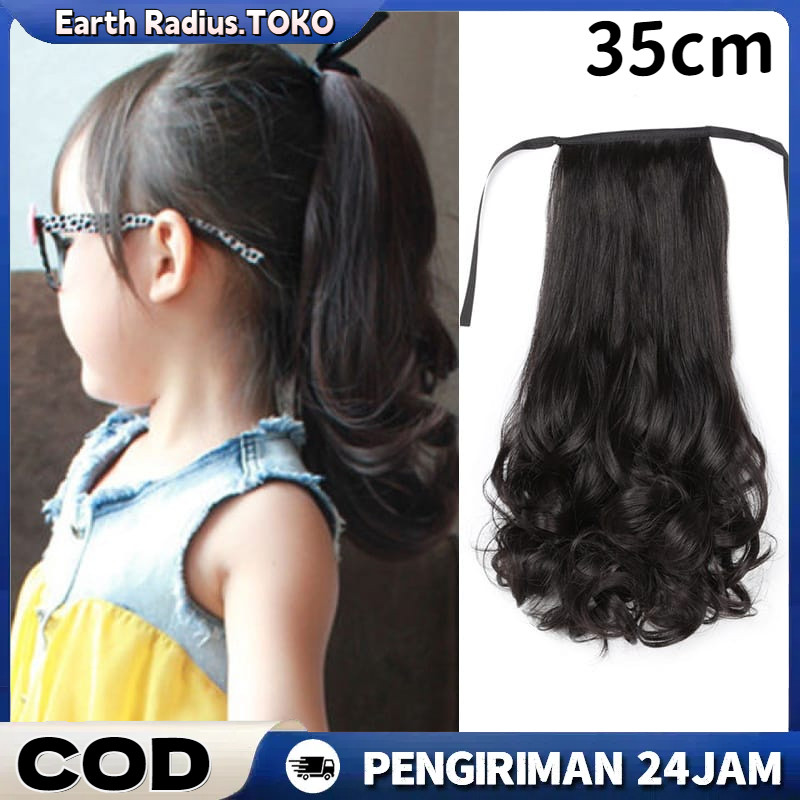 Wig Ponytail Anak Rambut Palsu Extension Hair Clip Ponytail Model Pendek Keriting 35cm Ponytail Curly Tali