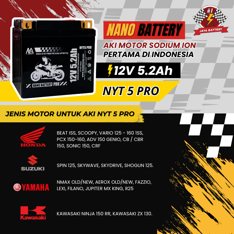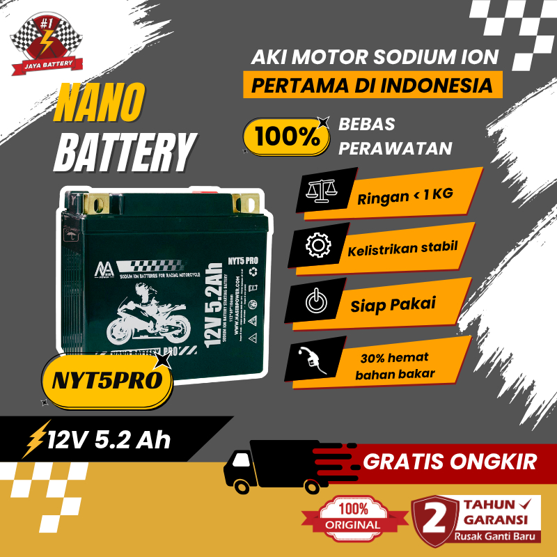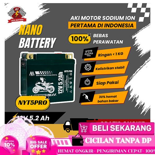 NANO BATTERY Aki Motor Racing Sodium Ion 12.4V 5.2A NYT5 PRO / YTZ6V GARANSI 2 TAHUN