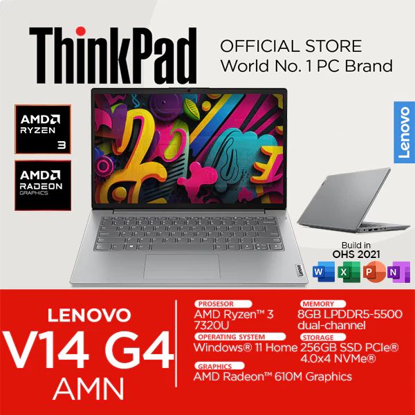 [Mall] Lenovo V14 Gen 4 AMD Ryzen 3 7320U 8GB RAM 256GB SSD 14 Inch Terbaru Full HD Windows 11 OHS AMN Termurah