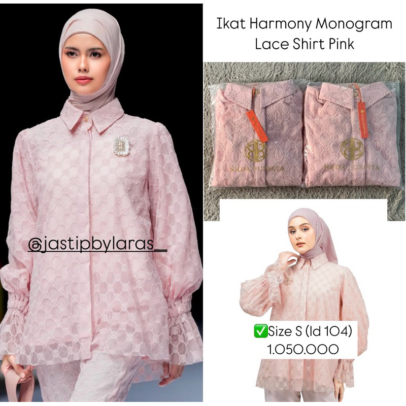 [READY STOCK] IKAT HARMONY MONOGRAM LACE SHIRT PINK NADA PUSPITA SIZE S