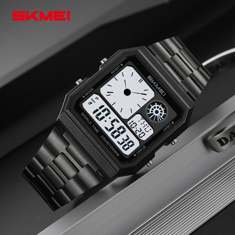 SKMEI 2353 Jam Tangan Pria Digital World Time Tali Stainless Tahan air MGOS