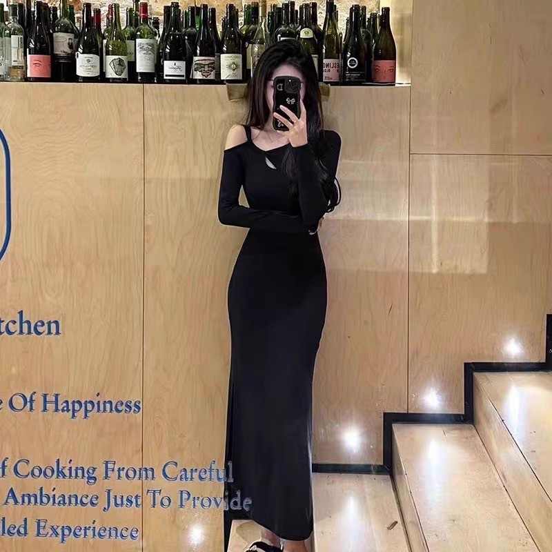 YIMITA LONG DRESS PRESS BODY WANITA HITAM PANJANG KOREAN STYLE BAJU MIDI DRESS LEBARAN AESTHETIC TERBARU 2025 BODYCON