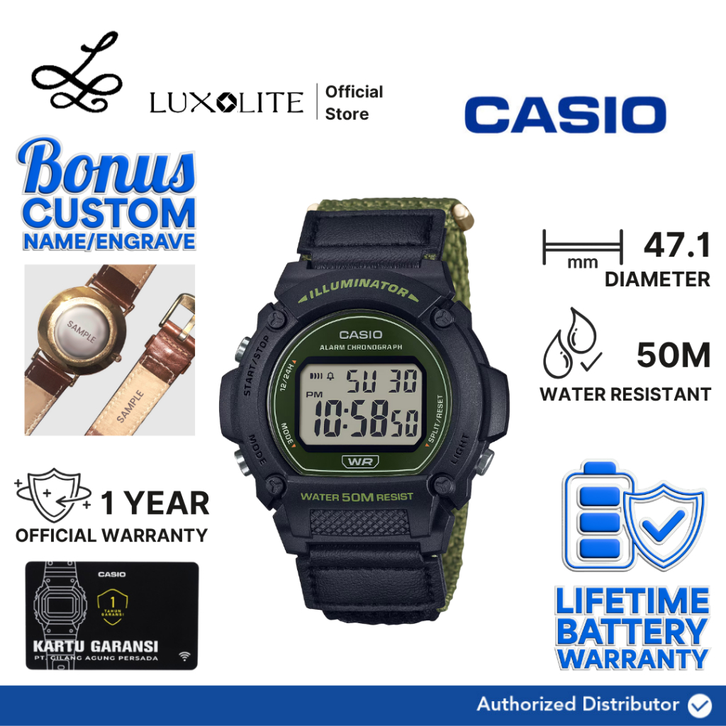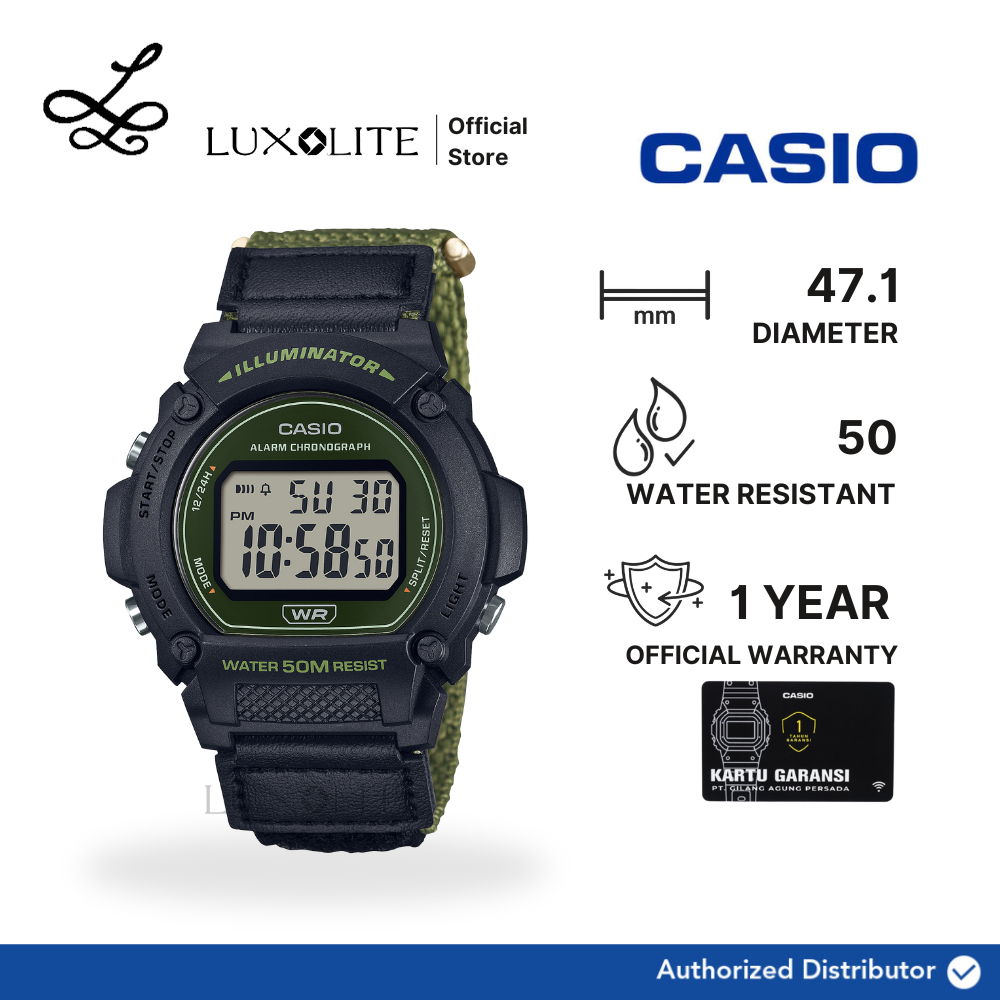 [Luxolite] CASIO Jam Tangan Pria Digital W-219HB-3AVDF W-219HB-3A W-219HB-3 Green Black Nylon Strap