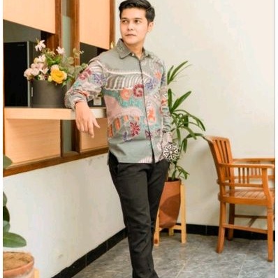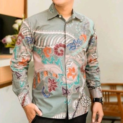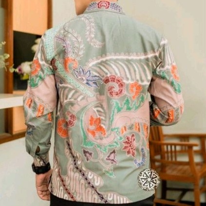 kemeja batik tulis pria lengan panjang dalam lapis trikot motif pesisir