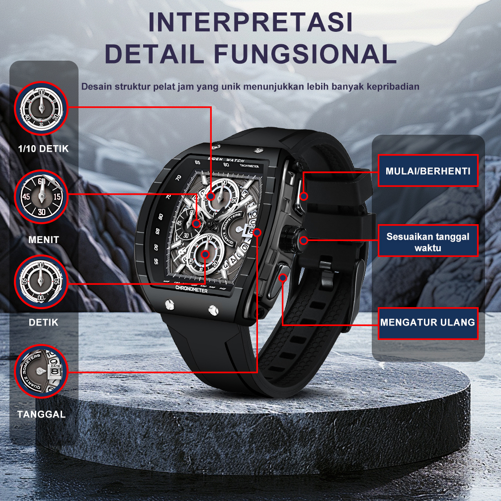 BIDEN Jam Tangan Pria Anti Air Olahraga Multifungsi Tali Silikon Pria Jam Tangan Cowok Original
