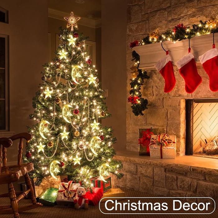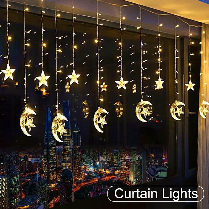 Murah 4M 138 LED Star Moon Curtain String Light Led 8 Mode Lampu Tirai Hias Kamar - Star Warm white Elegan