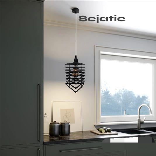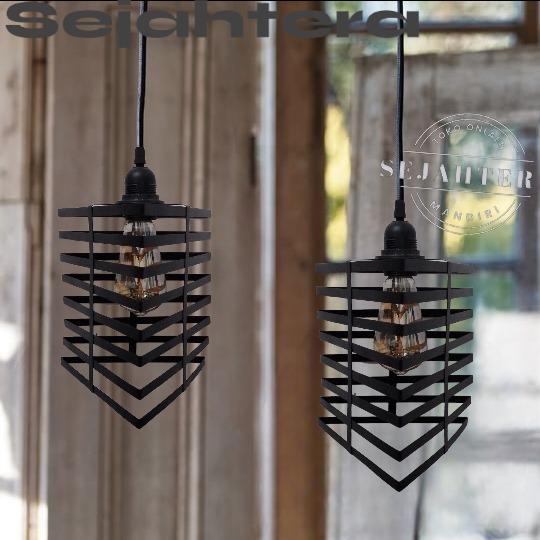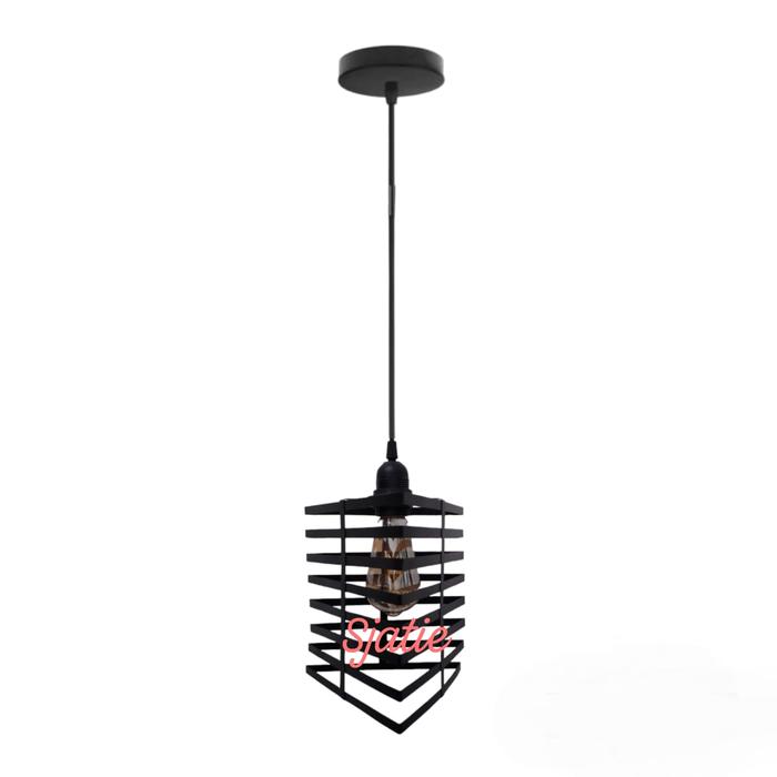 Murah Kap lampu hias gantung cabang 3 Bulat dekorasi ruangan Besi warna Hitam dan Kabel Elegan