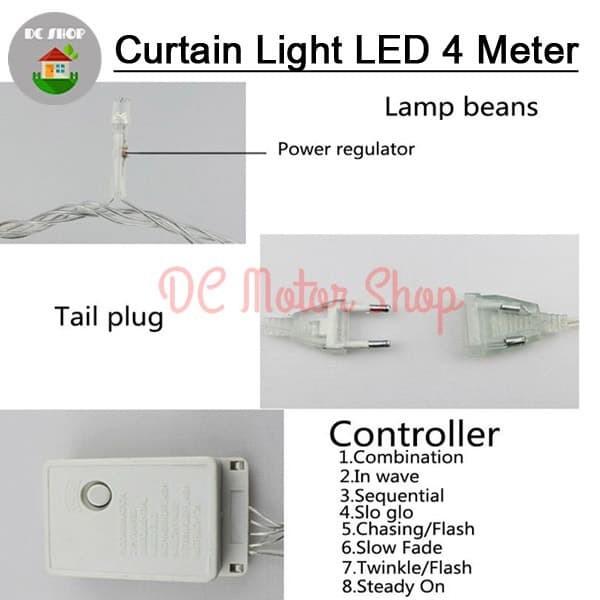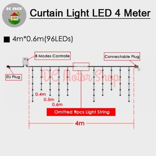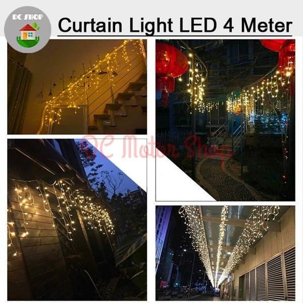 Terlaris Lampu Tirai / Hiasan / Lampu Natal / Lampu LED Tirai 4 Meter 100 Led - White Elegan