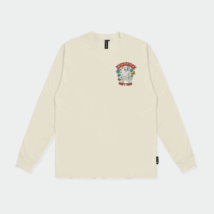 TERLAKU Kickchick Tshirt Longsleeve Happiness White & Cream| Kaos Lengan Panjang | KCLS137 isahc