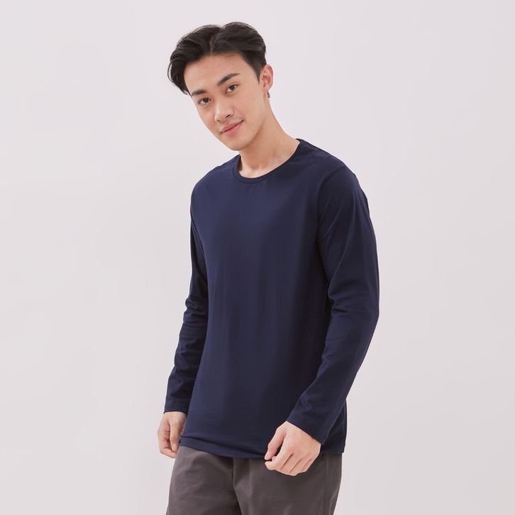 TERLARIS KOZE - Long Sleeve Premium Comfort Premium Combed 30S Navy T-shirt - Kaos Polos Lengan Panjang Biru Tua