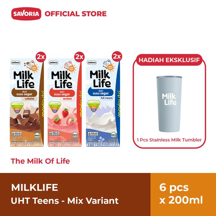 Murah MilkLife UHT Teens Mix Variant 6 Pcs x 200ml + Milk Tumbler Keren