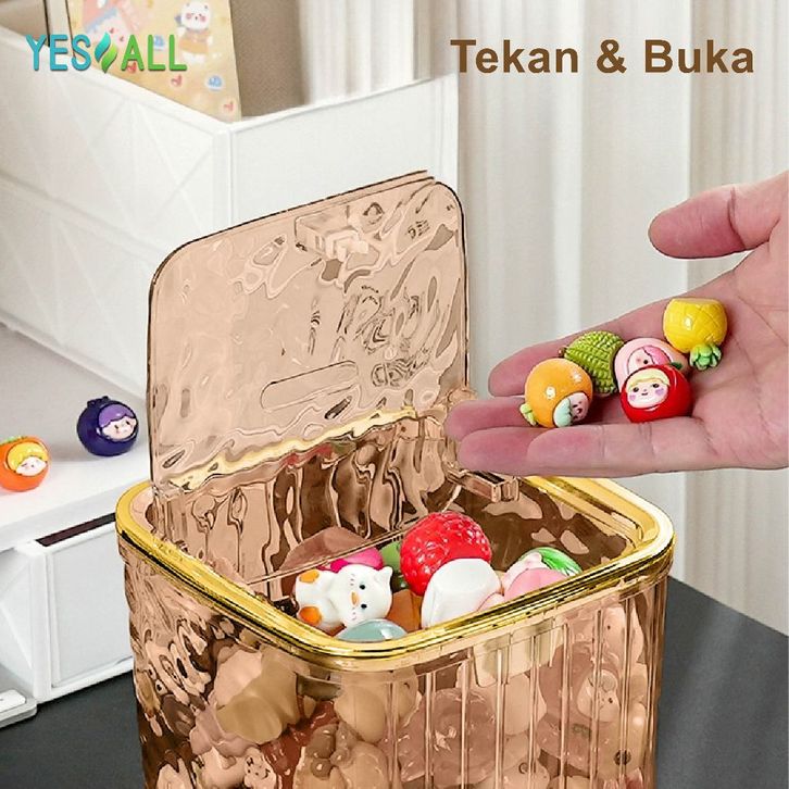 YESALL Kotak Penyimpanan Tekan Otomatis - Kotak Meja Transparan Estetik Tutup Tekan Rak Organizer Kosmetik / Alat Tulis