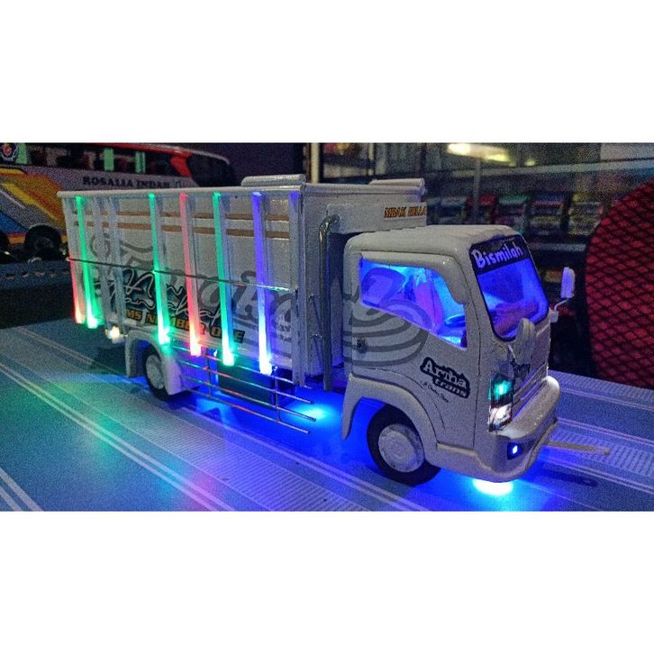 Miniatur truk new tawakal 5 full lampuan bahan triplek