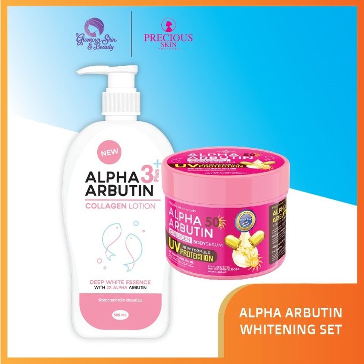 Precious Skin Thailand Alpha Arbutin 3+++ 2 In 1 Whitening UV Serum Body Booster Set Lotion + Serum