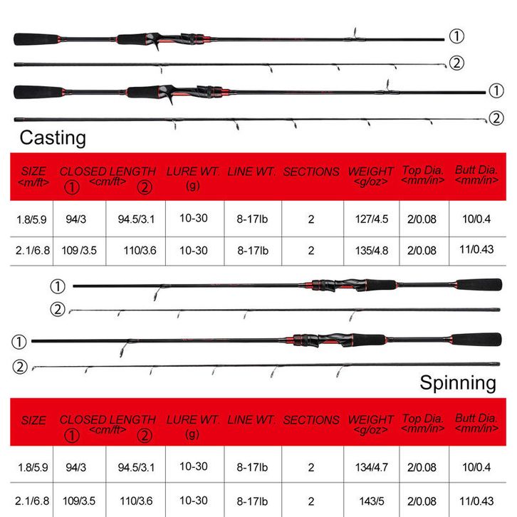 Joran Pancingan MUXI Joran Pancing Carbon Sutet 2 Bagian Tongkat Pancing Putar/Casting UL Power 1.8M/2.1M Untuk Air