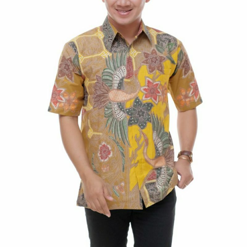 Batik pria lengan pendek tulis modern katun premium reguler fit