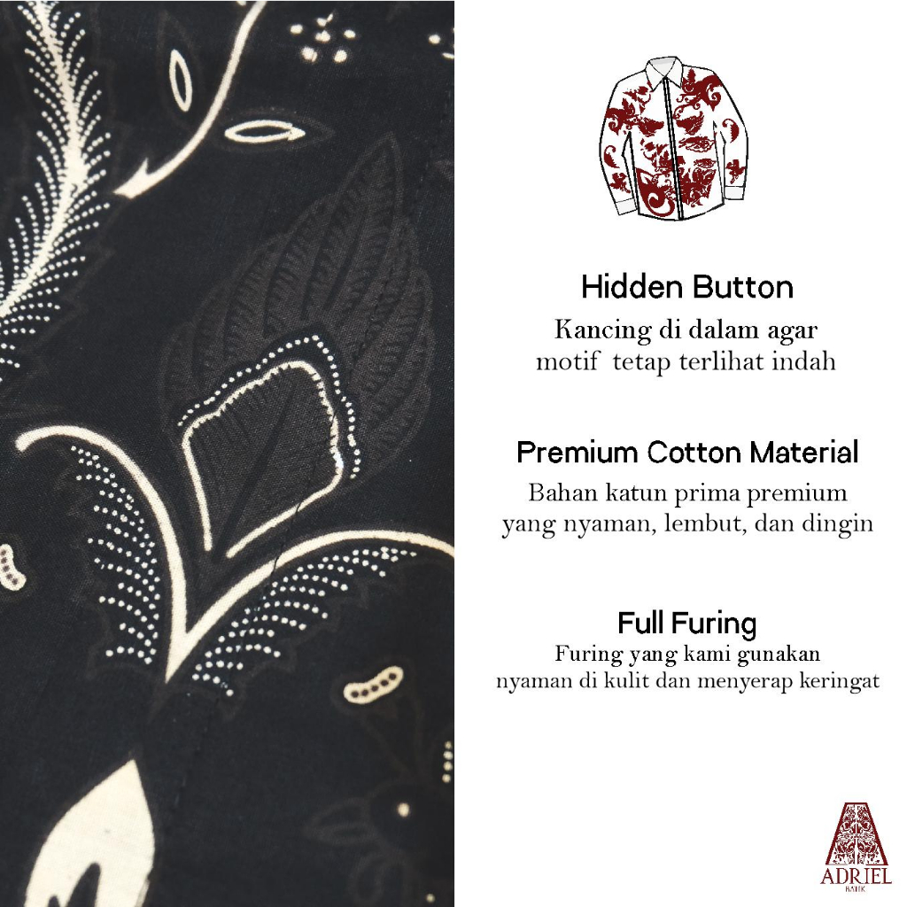 RAJANA BATIK TULIS PREMIUM (Kemeja PRIA / Tunik WANITA / Gamis WANITA) - Slim Fit Batik Premium Solo Lengan Panjang Full