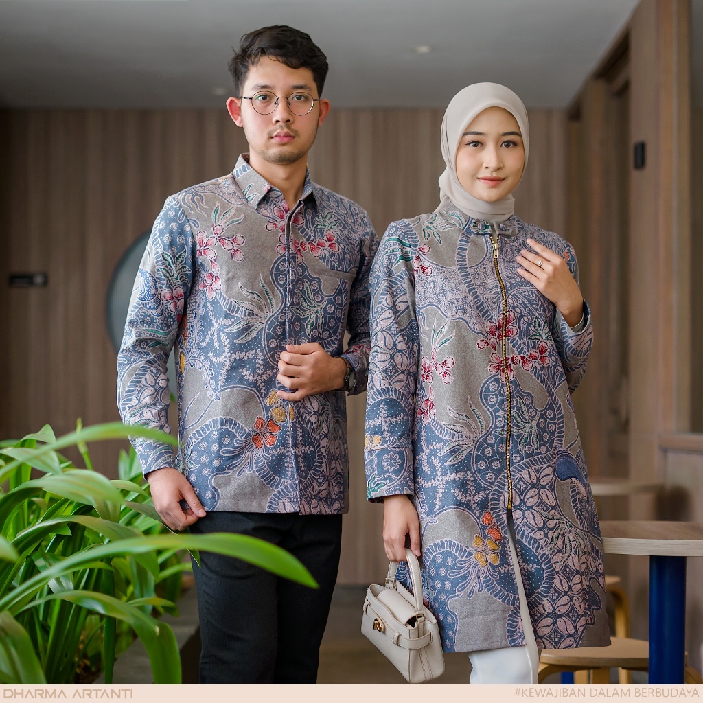 DHARMA ARTANTI | (FREE HIJAB) Couple Batik Semi Tulis Motif Safira Lapis Trikot Busui Friendly