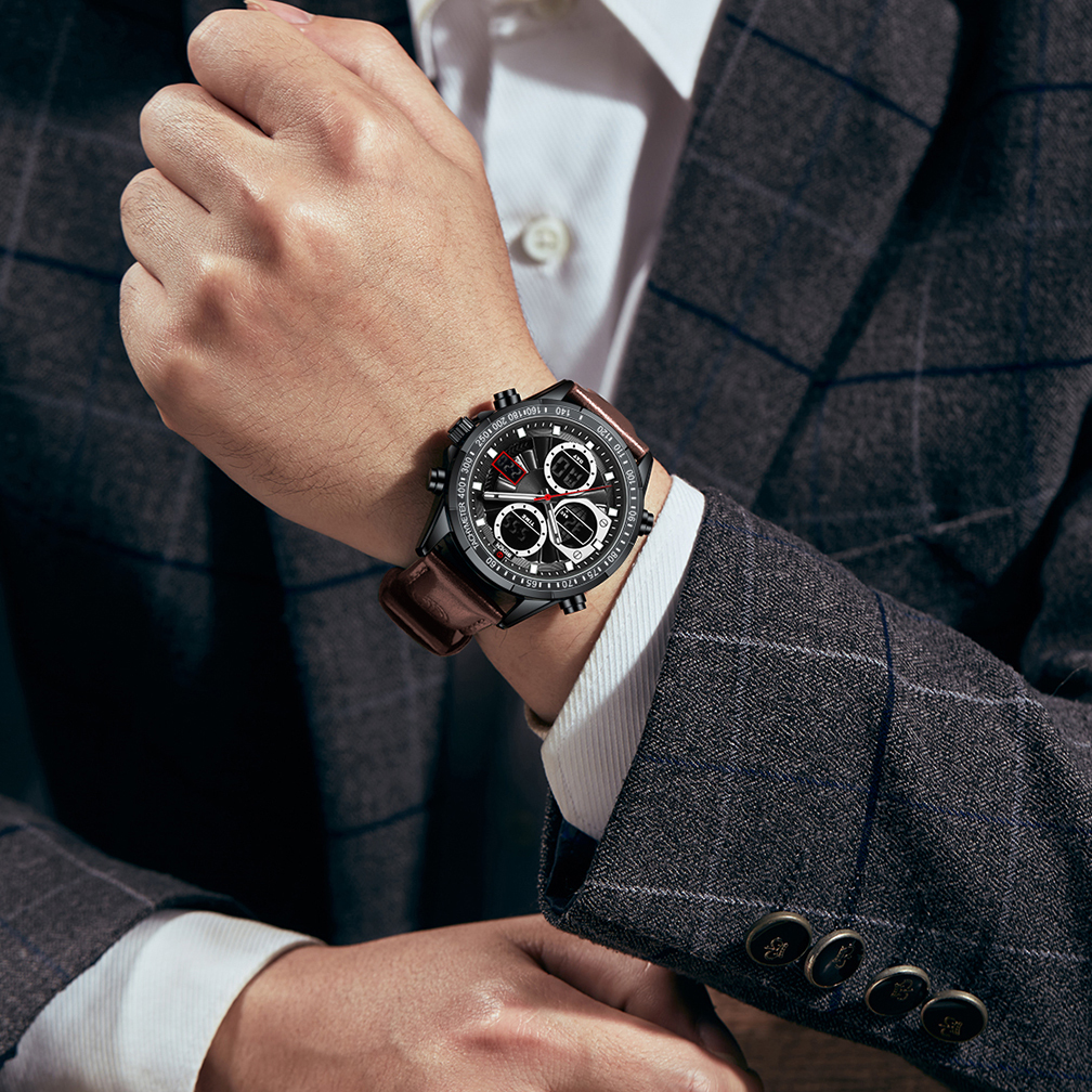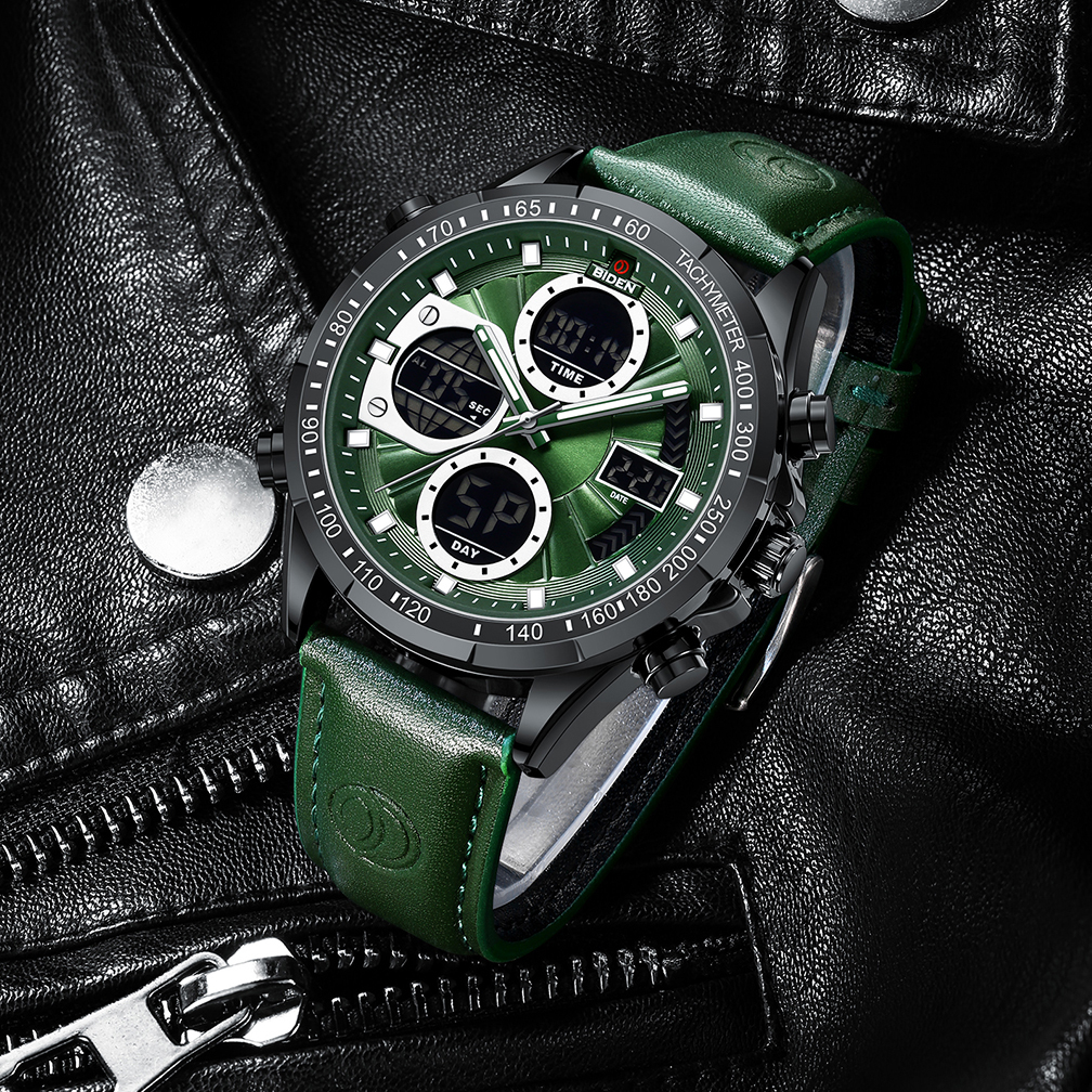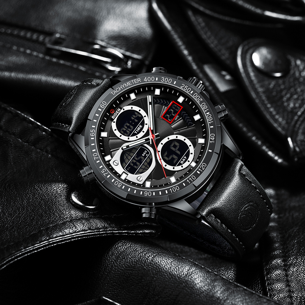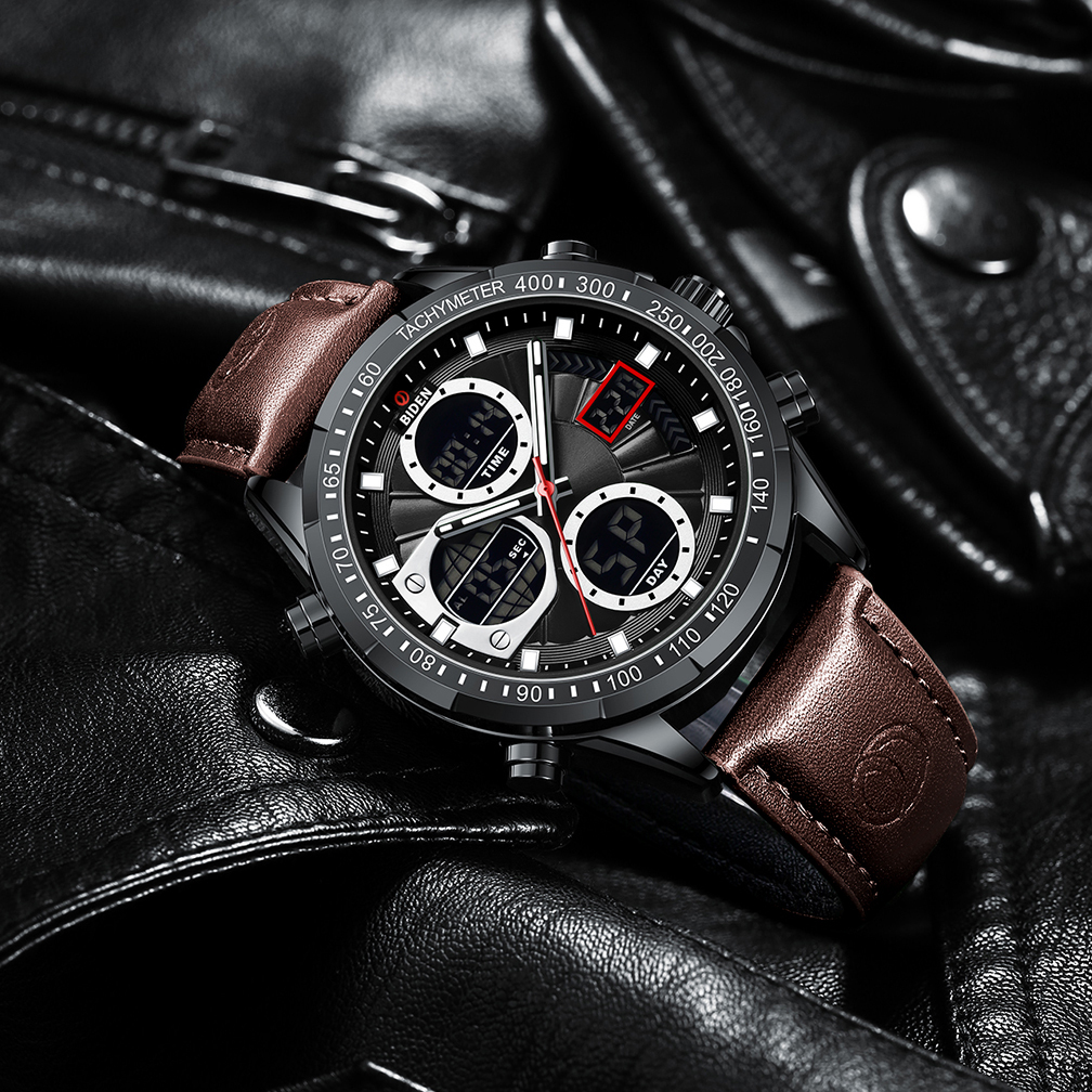 BIDEN Jam Tangan Pria Anti Air Original Olahraga Multifungsi Alarm Kalender Bercahaya Tali Kulit Jam Tangan Cowok