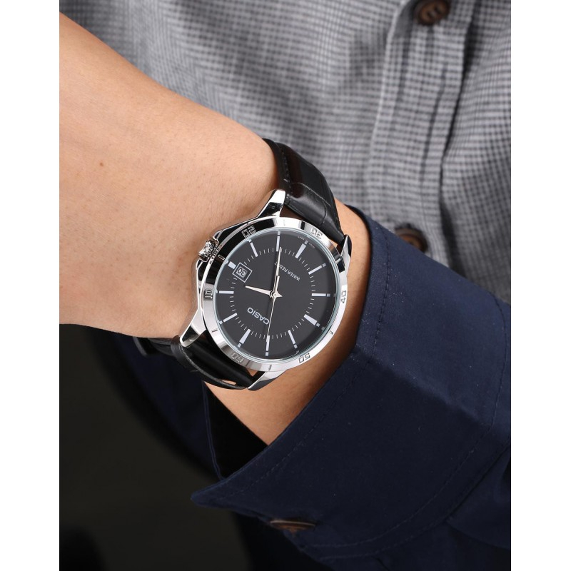 Jam Tangan Pria Casio General MTP-V004L-1A Black Dial Black Leather Band