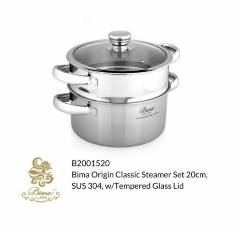 Steamer Set Bima Origin Classic SUS304 w/Tempered Glass Lid (tutup kaca) /panci kukusan