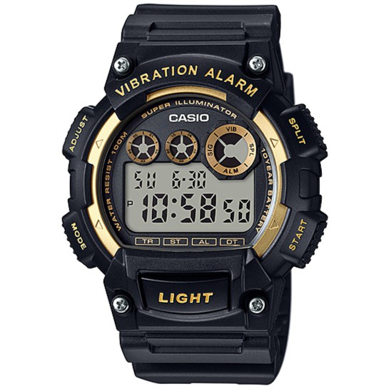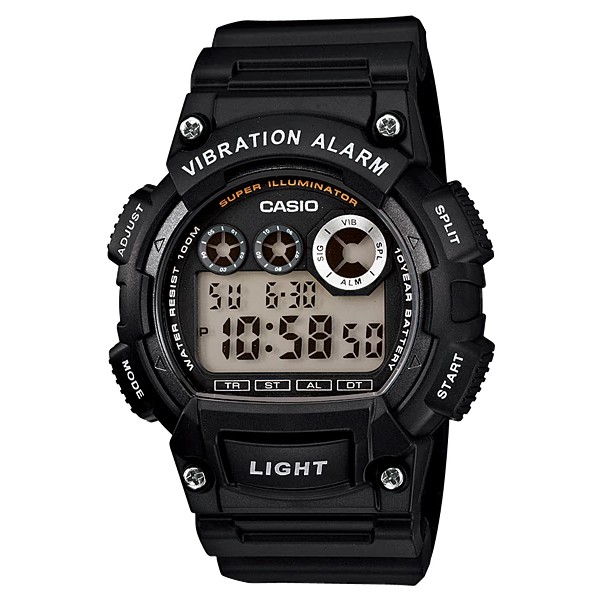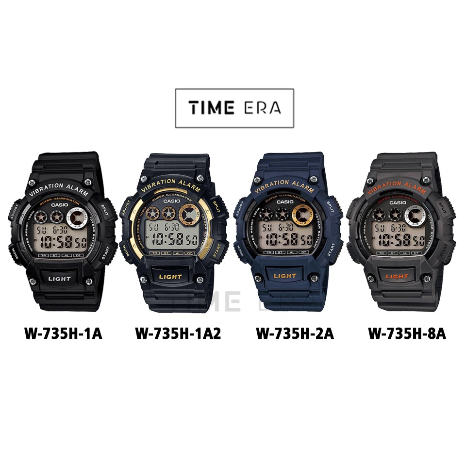 Casio Original W-735H-1A2 / W735H-1A2 (Vibration Alarm) Jam Tangan Pria Digital Karet Hitam Black