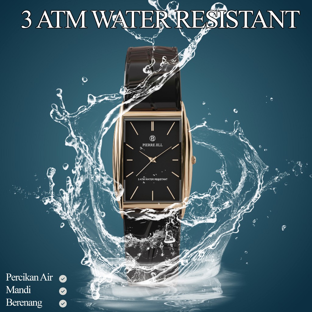 PIERRE JILL 1798 JAM TANGAN PERSEGI CASUAL FASHION PRIA TALI KULIT 3ATM WATER RESISTANT ORIGINAL FREE BOX