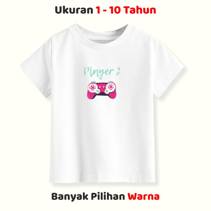 Kaos Anak Laki Laki Gambar Gamer Stick Game Player Two Lengan Pendek Usia 1-10 Tahun