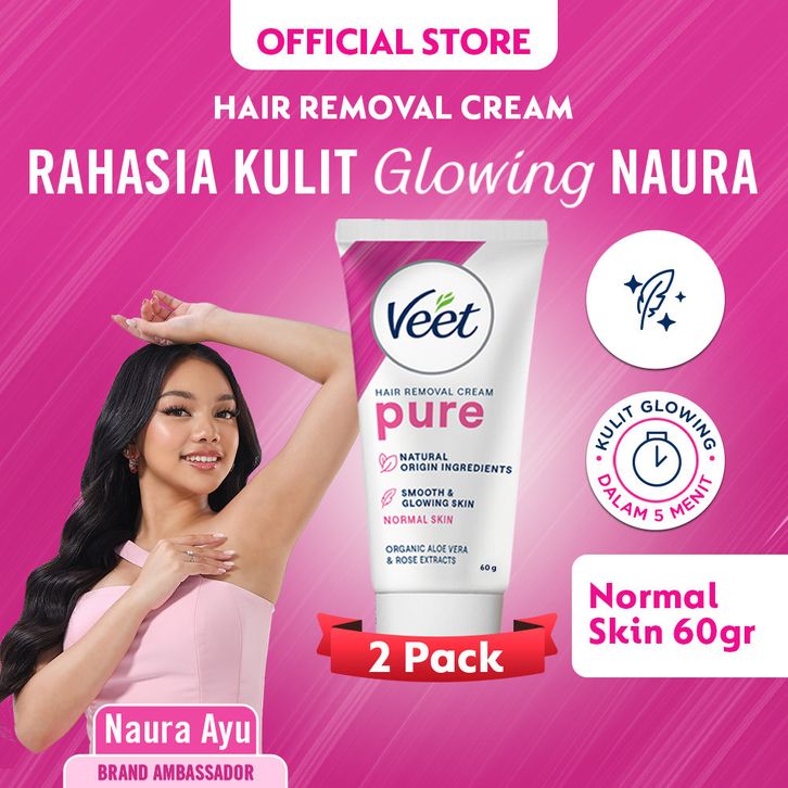 Veet Normal Pure Formula Aloe Vera & Rose Extract 60gr 2 pcs - Krim Waxing Penghilang Bulu