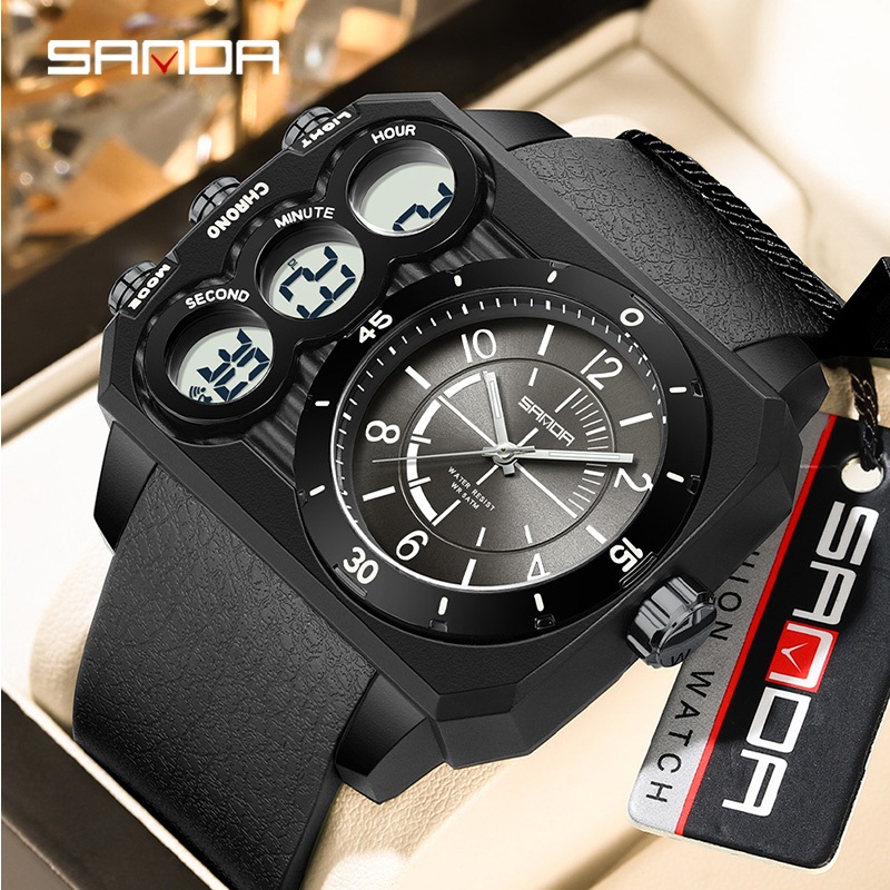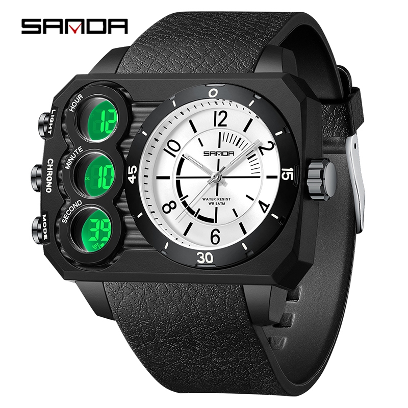 SANDA 6237 Jam Tangan Pria Digital Analog Sport EL Backlight Anti Air