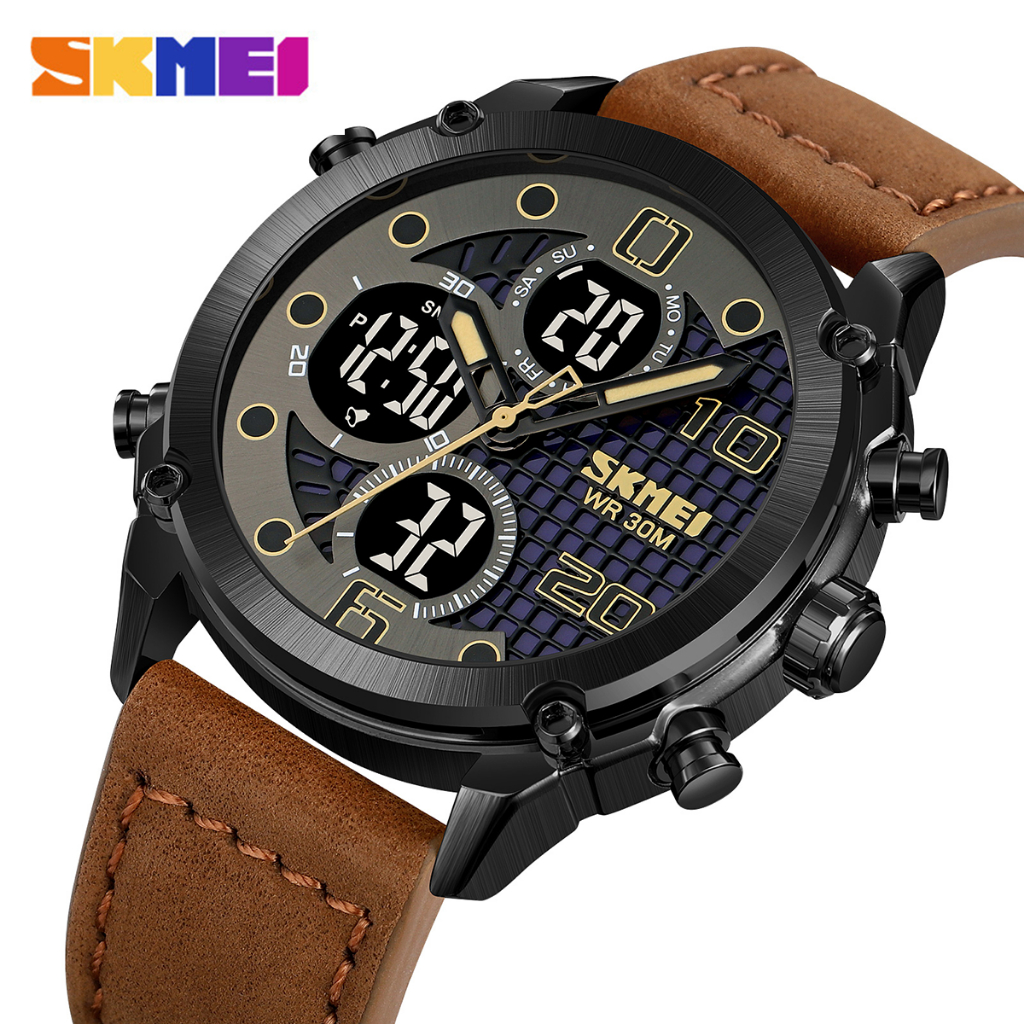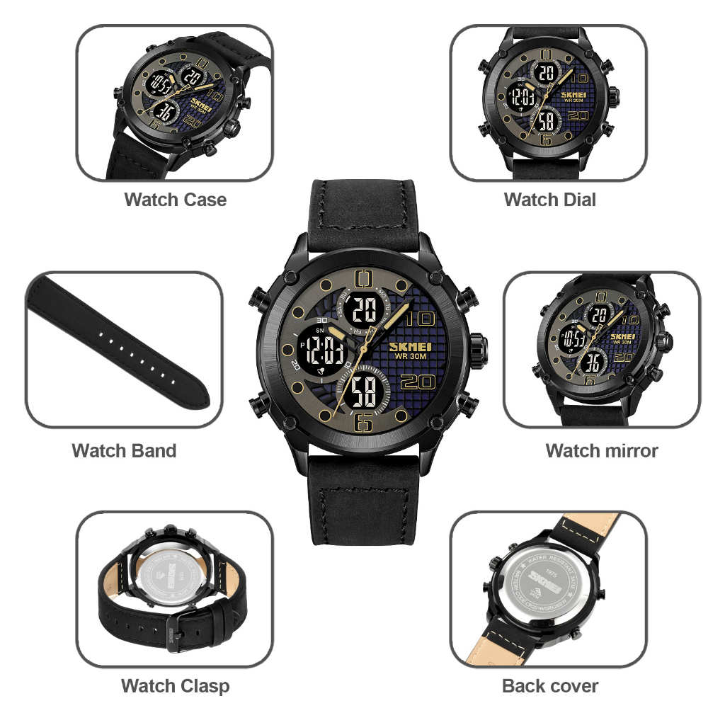 SKMEI 1975 Jam Tangan Pria Digital Analog Tali Kulit PU WATCHKITE WKOS