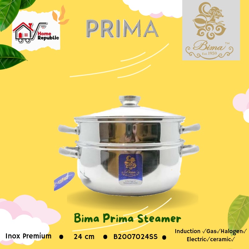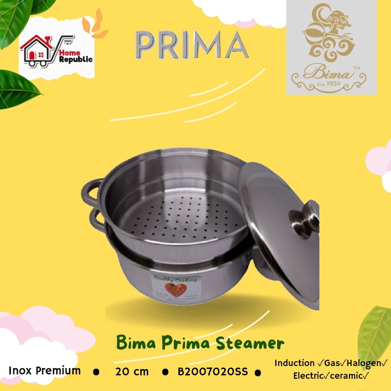 Bima Prima Panci Steamer 20cm 24cm Kukus Tim 2Tingkat Susun B2007020ss B2007024ss