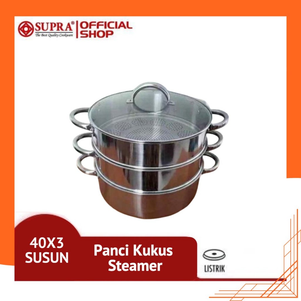 Supra Super Steamer 40 cm x3 Susun / Panci Kukus Susun