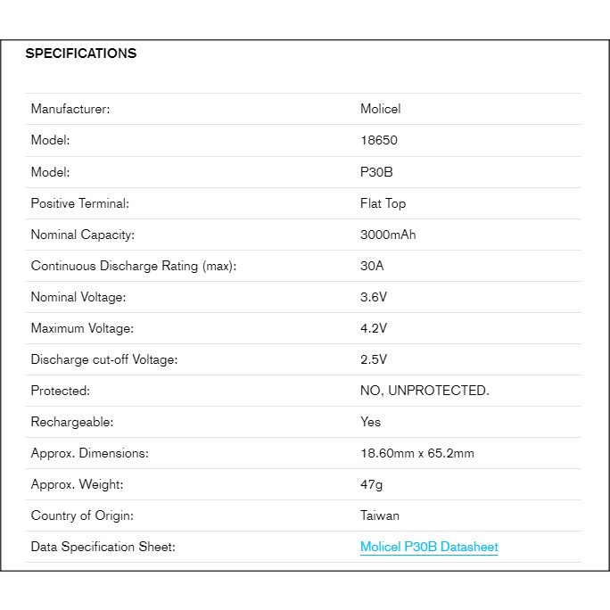 Authentic MOLICEL P30B 18650 Battery | 3000mAh 30A | baterai original batere rechargeable | ini bukan p28a p28b