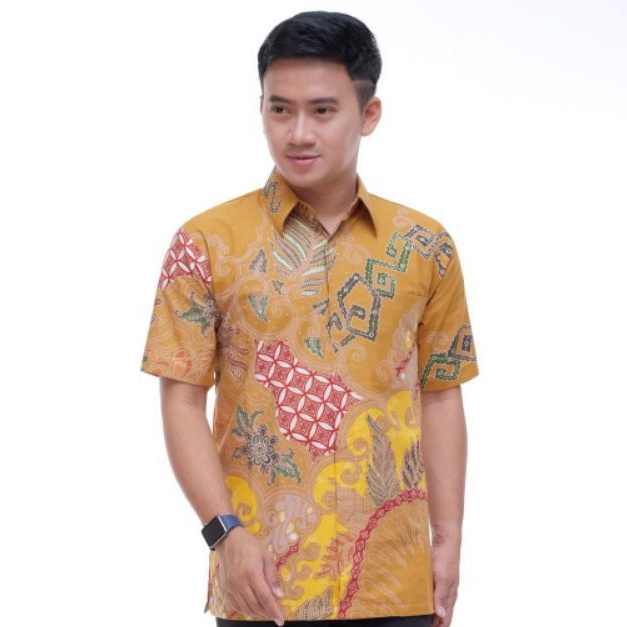kemeja batik pria batik tulis lengan pendek dalam lapis furing ak09