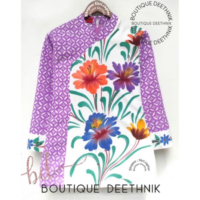 Deethnik baju batik cap ungu mix encim tulis lukis asli