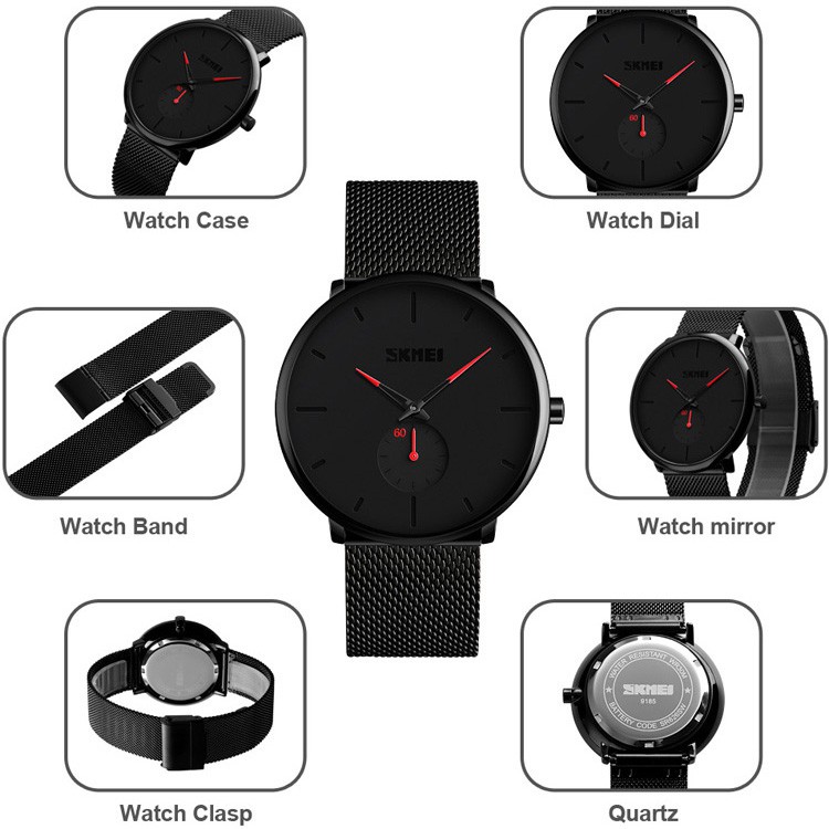 SKMEI 9185 Jam Tangan Pria Wanita Analog Tali Rantai Pasir Chronograph WATCHKITE WKOS