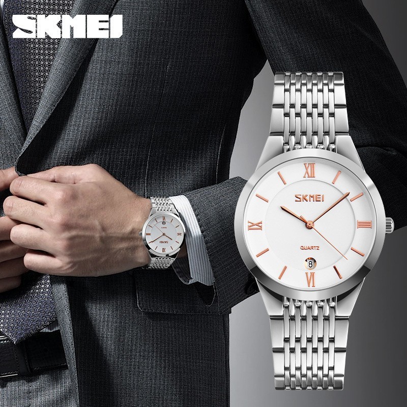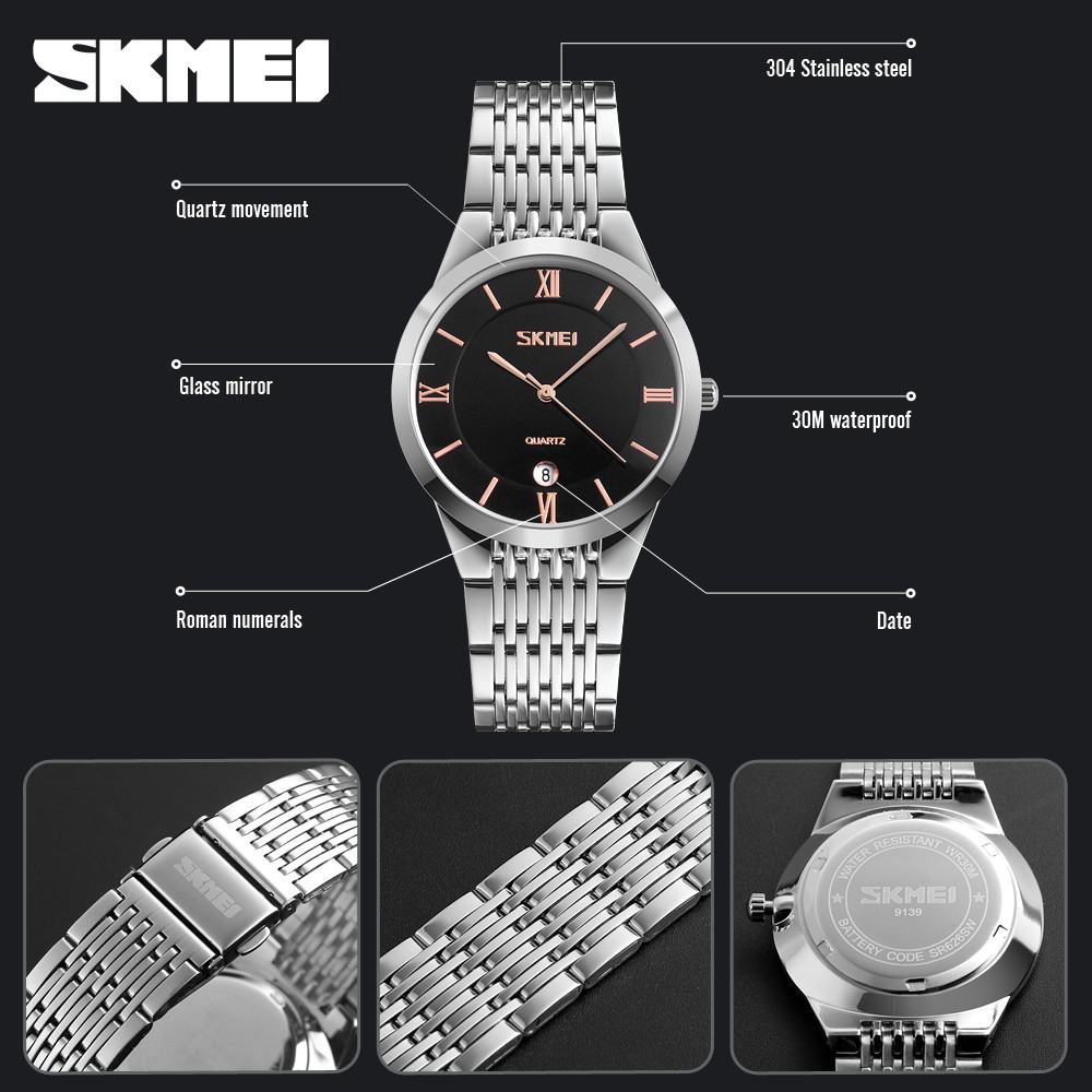 Jam Tangan Pria Analog Skmei 9139 Silver Black Water Resistant 50m