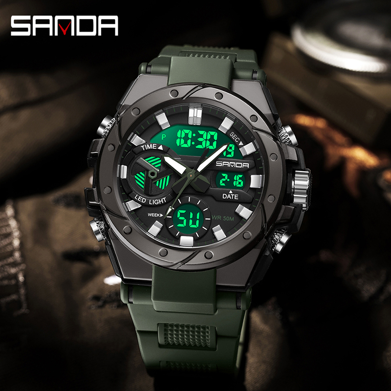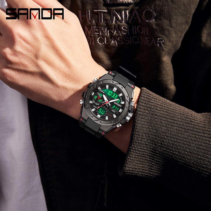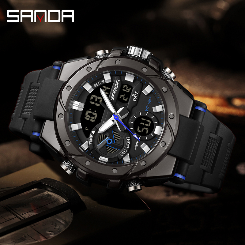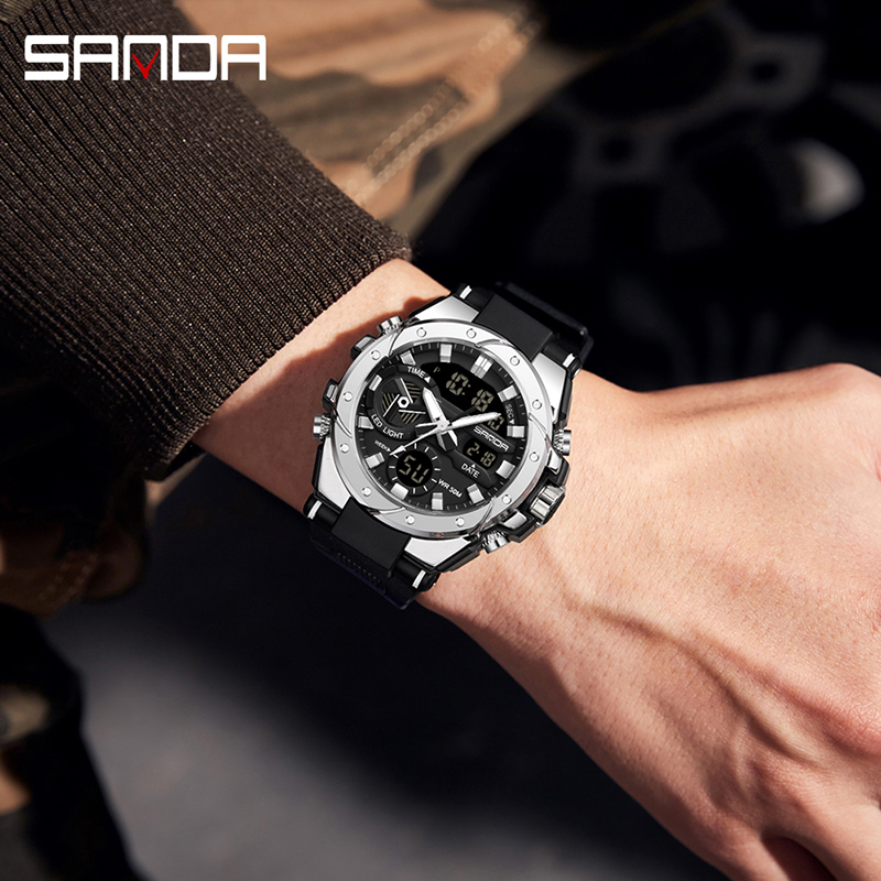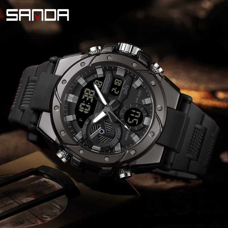 SANDA 3313 Jam Tangan Pria Digital Analog Tali Rubber Chronograph Anti Air CURRENOS