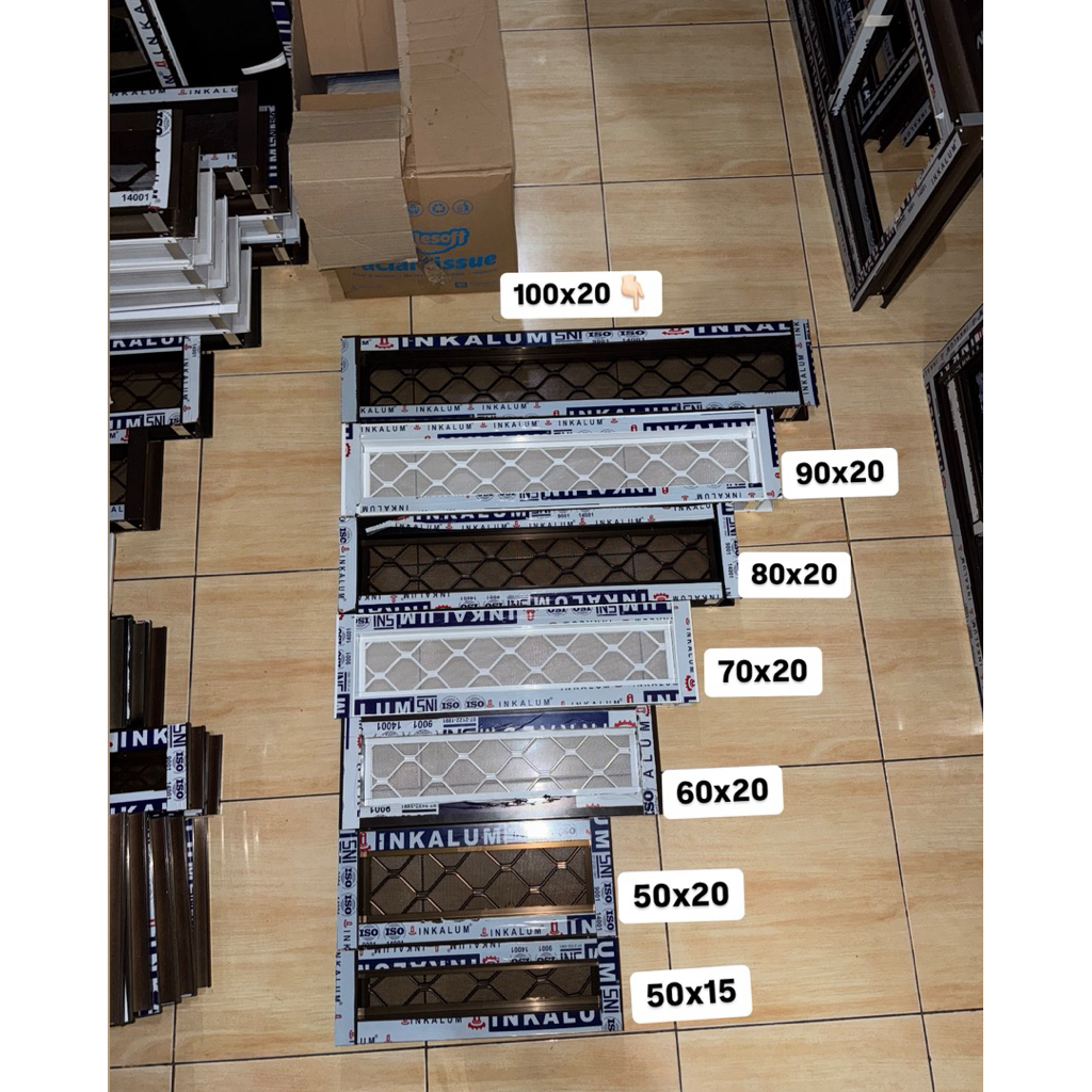 (VENTILASI KAMAR KAWAT NYAMUK ALUMUNIUM ANTI KARAT +TRALIS 50CM X 20CM/VENTILASI KAWAT NYAMUK ALUMINIUM ANT KARAT INDUSTRIAL UK 50CM X 20CM + TRALIS)